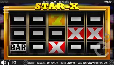 Играть на деньги в игровой автомат Star-X занятно, так как кроме базового режима предусмотрен дополнительный, что повышает возможность наполнения баланса. Игроки могут заметить звездочку над барабанами. Если эта звездочка появляется на последней полосе, она умножает выигрыши в матрице, через которую проходит звезда. Кроме того, тот же символ-звезда может иметь знак фриспинов вместо значения множителя. Таким образом, гэмблеры могут активировать до 25 фри-прокруток. Выигрыши в фри-режиме будут умножаться на значение множителя, выбранное случайным образом. В целом, это забавный релиз в классическом стиле с приятными бонусными функциями.