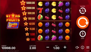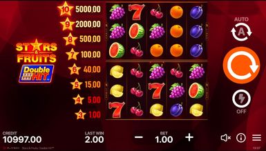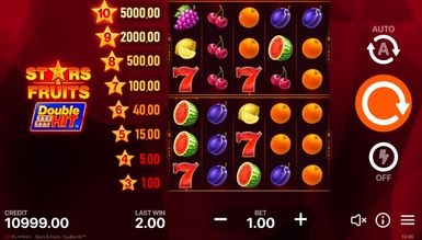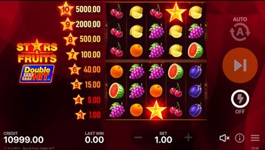 Известный бренд Playson регулярно радует своих поклонников и на этот раз их вниманию представляет увлекательный игровой автомат Stars & Fruits Double Hit. Необычный симулятор отличается тем, что игровой процесс ведется одновременно на двух полях. У каждого участника есть хорошие шансы на успех. Внушительная награда достанется каждому, кто рискнет на настоящие монеты. Простые правила и качественная анимация — очередные преимущества виртуального игрового автомата Stars & Fruits Double Hit.