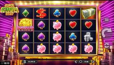 Демо слот Super Cash Drop, разработанный Yggdrasil, безусловно, привлекает внимание. Яркая цветовая гамма включает в себя блестящую валюту, ярко-розовую свинью и масти игральных карт с золотистой отделкой. Стопки наличных и золотистых монет скапливаются по бокам барабанов, а яркий розово-фиолетовый фон помогает им выделиться еще больше. Ставка варьируется от 0,20 до 100,00 монет. Игрок выигрывает, сопоставляя символы на соседних барабанах слева, иконки должны быть в пределах одного ряда от предыдущей катушки. Линий для этого предусмотрено 178. Коэффициенты для начисления призов: