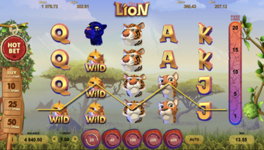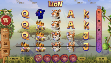 Включив игровой автомат The Lion от производителя Gamzix, посетитель отправиться в увлекательное путешествие, где ждет знакомство с дикими животными. Аппарат предоставит возможность получить не только щедрую порцию адреналина, а и достойные выплаты на счет, играя на реальные деньги. Шанс разбогатеть есть у каждого рискового геймера. А если решите поиграть бесплатно в симулятор, на выигрыш не рассчитывайте, опыт и азартное удовлетворение гарантированно. Для этого активируйте демо версию игрового автомата The Lion без смс и без регистрации, а на кон делайте ставку в виде фантиков.