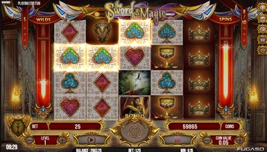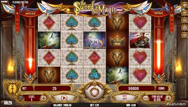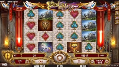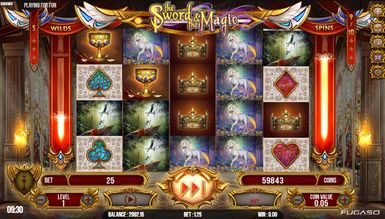 В слоте The Sword and The Magic пять барабанов с 75 постоянно активными полосками, на каждую из них принимается ставка от пяти до 25 кредитов за спин. Скачав на телефон слот-машину, геймер может играть с мобильного в любое время. Игровой автомат The Sword and The Magic не имеет бонусного раунда, а прогрессивный накопитель Вайлдов есть, что позволяет получить дополнительно свободные вращения.