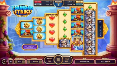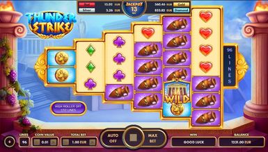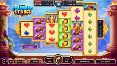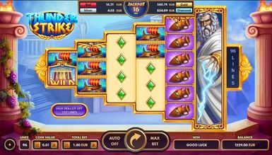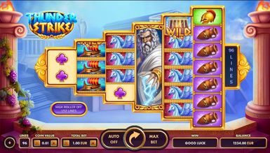 Игровой автомат Thunder Strike - прекрасная возможность окунуться в мифологические события Древней Греции - познакомиться с легендарным греческим богом, который считался главным среди богов-олимпийцев - ему подчинялись громы и молнии, небо и весь мир. Игроку предоставляется необычный интерфейс, многочисленные вайлды и скаттеры, шанс пользоваться бонусной ставкой, продуктивные фри-спины с перевернутым полем. Теоретический уровень отдачи автомата 96,60%. Волатильность высокая.