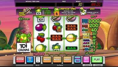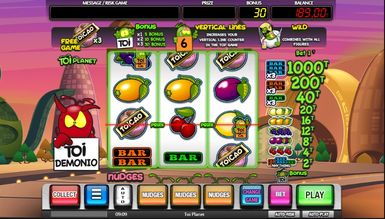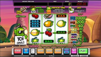 Трехбарабанный слот Toi Planet оснащен 1 линией выплат. Этим обусловлено максимальная простота восприятия. Перед стартом поставьте 1 монету, выбрав ее номинал от 0,01 до 1 доллара. Если не уверены в результате, то играйте бесплатно и без регистрации. В тестовой версии слот-машины отсутствует риск потери средств, а потому вы полностью сосредоточитесь на развлечении и сформируете прибыльную стратегию.