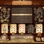 По верхнему краю основного экрана расположен стилизованный логотип, который также окружен множеством шестеренок. Сразу под ним расположилась таблица с действующими комбинациями и соответствующими выплатами, которые динамично изменяются при варьировании ставки. еще ниже свое место нашли пять ячеек, в которых после очередной раздачи окажутся соответствующие пять карт. Под картами на небольшой бегущей строке пользователь может наблюдать стандартные рекомендации, которые помогут сориентироваться в собственных действиях, что особенно актуально для не очень опытных пользователей и новичков.