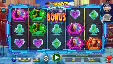 Игровой автомат Wild Force Frosty Wins предоставляет возможность собирать комбинации на пяти барабанах и двадцати выплатных линиях. В качестве призовой символики используются изображения трех супергероев, магические ледяные шары и стилизованные карточные масти. Для получения выплаты необходимо, чтобы на линии выпало как минимум две одинаковых картинки. Кроме базовой символики, в игре участвует вайлд и знак бонуса.